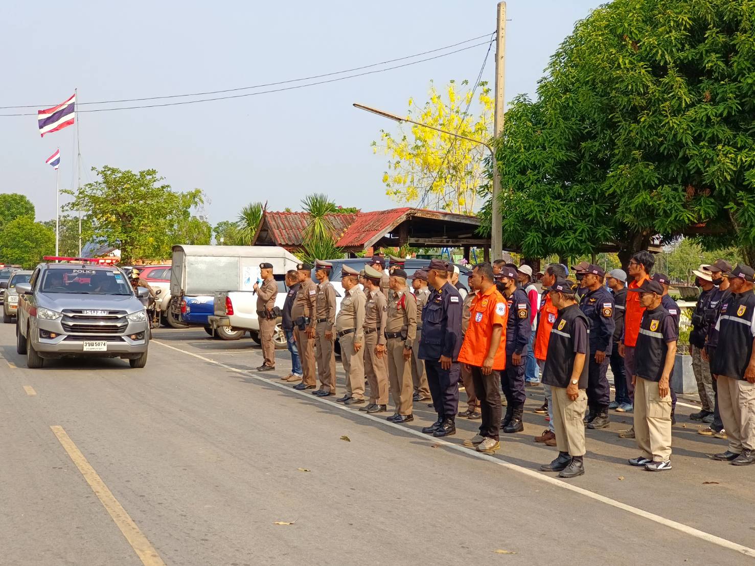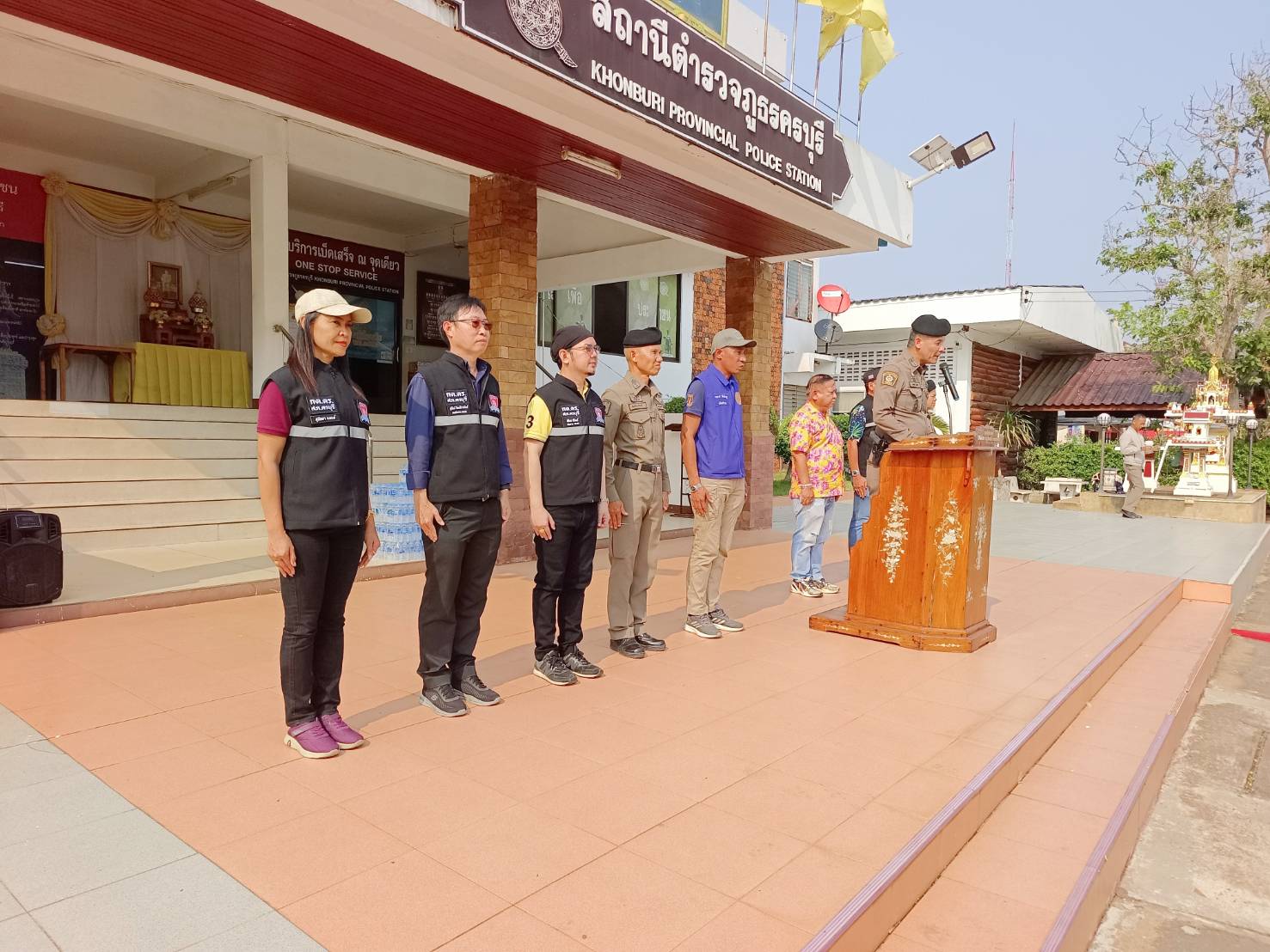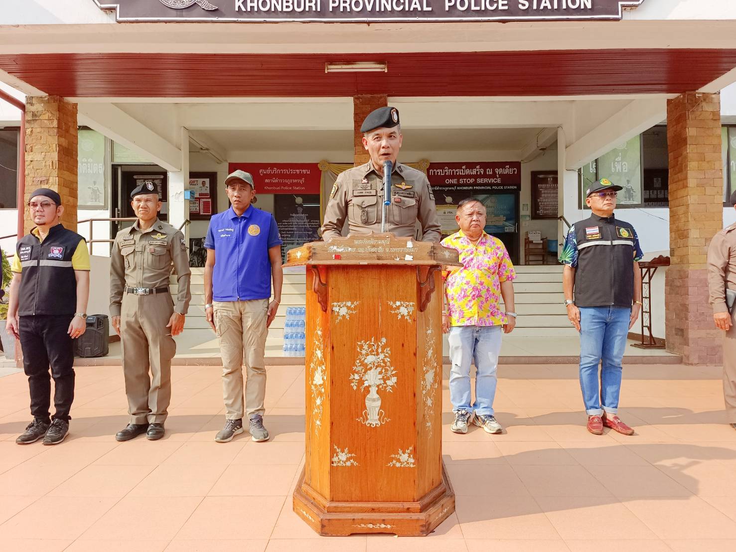 ประธาน คณะกรรมการ ที่ปรึกษา กต.ตร.สภ.ครบุรี ร่วมกับฝ่ายปกครอง อ.ครบุรี กำลัง อส. ผรส. นายกเทศมนตรี รองนายกเทศมนตรีเทศบาลตำบลแชะ กำลัง อปพร. เทศบาลตำบลแชะ หน่วยกู้ภัยฮุก31 จุดอำเภอครบุรี ร่วมปลอยแถวระดมกวาดล้างอาชญากรรมห้วงเทศกาลสงกรานต์ 2567 บริเวณ หน้า สภ.ครบุรี