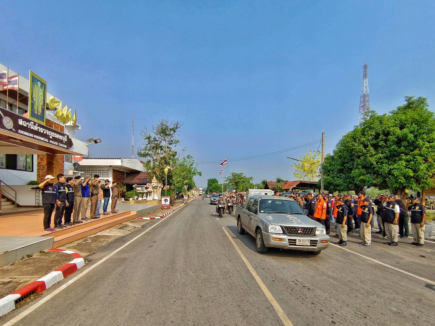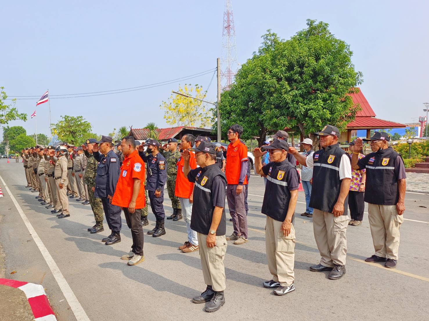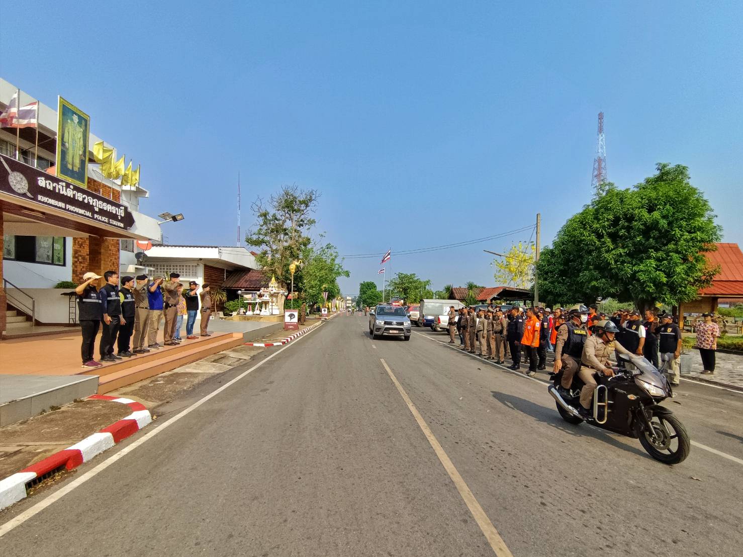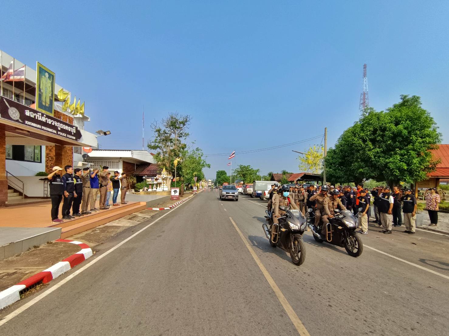ประธาน คณะกรรมการ ที่ปรึกษา กต.ตร.สภ.ครบุรี ร่วมกับฝ่ายปกครอง อ.ครบุรี กำลัง อส. ผรส. นายกเทศมนตรี รองนายกเทศมนตรีเทศบาลตำบลแชะ กำลัง อปพร. เทศบาลตำบลแชะ หน่วยกู้ภัยฮุก31 จุดอำเภอครบุรี ร่วมปลอยแถวระดมกวาดล้างอาชญากรรมห้วงเทศกาลสงกรานต์ 2567 บริเวณ หน้า สภ.ครบุรี