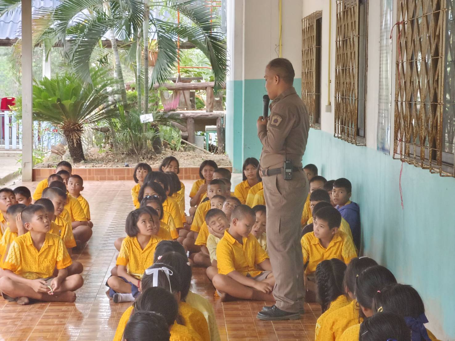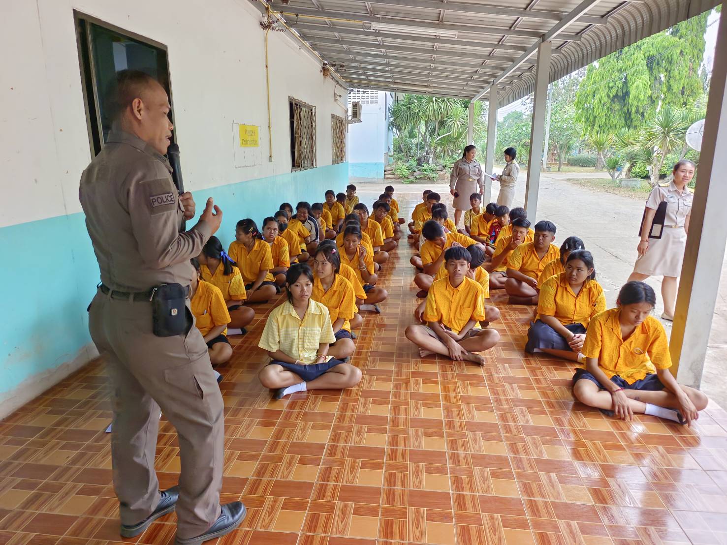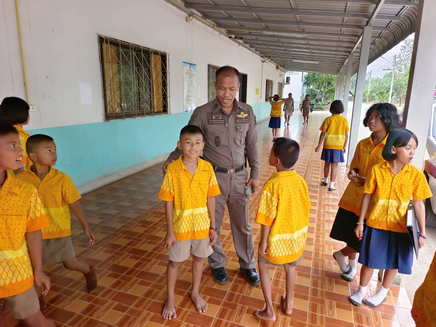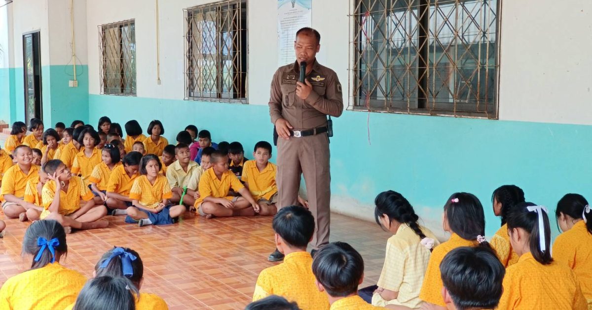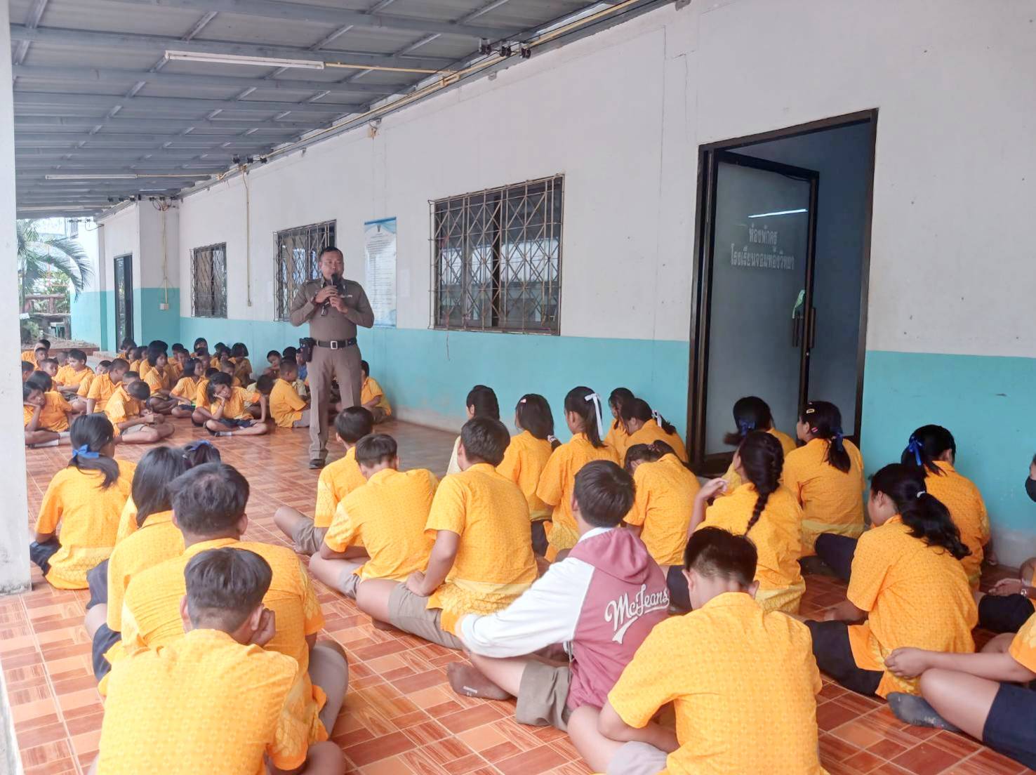 ร.ต.ต.สำเริง สุดาจันทร์ เจ้าหน้าที่ ชส. ออกเยี่ยมก่อนปิดเทอม ให้ความรู้ การป้องกันยาเสพติด บุหรี่ไฟฟ้า และวินัยจราจร แก่นักเรียน โรงเรียนจอมทองวิทยา บ.ตลิ่งชัน ต.จระเข้หิน ชั้น ป. 4 – ม. 3