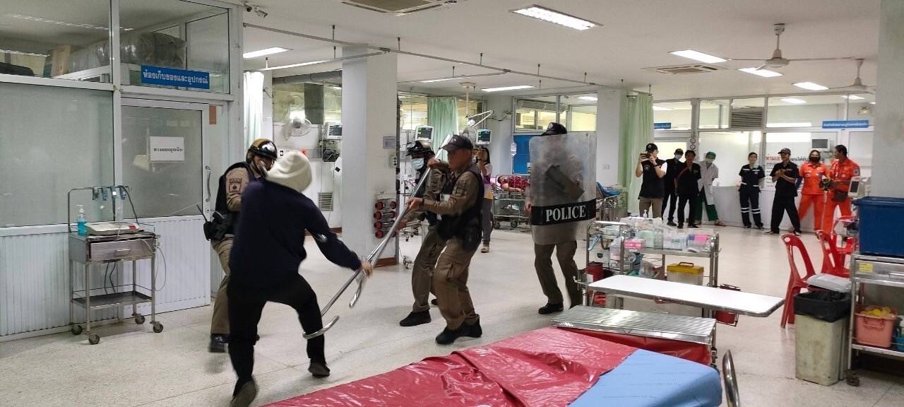 ซักซ้อมแผนเผชิญเหตุ การก่อความวุ่นวาย คลุ้มคลั่ง ในโรงพยาบาล