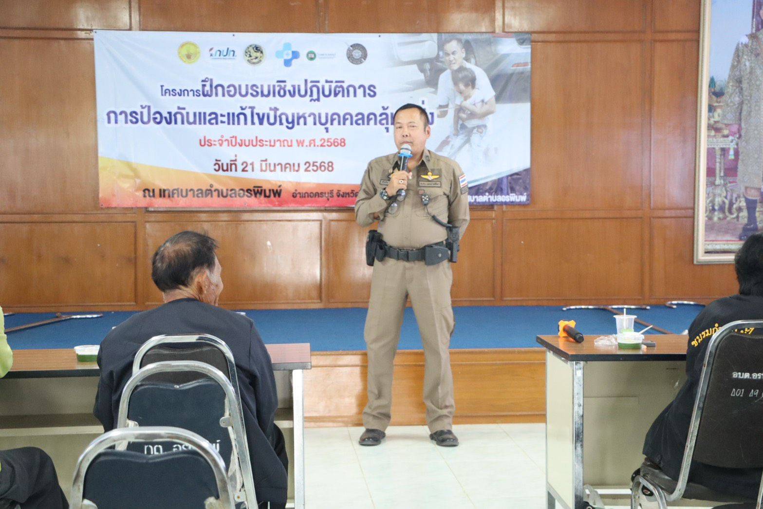 วันที่ 21 มี.ค. 2568 เวลา 08.30 น. พ.ต.ต.วสันติ มลอยู่พะเนา สวป.(ชส.)ฯ, ร.ต.อ.รชถสิทธิ์ แสงกระโทก พร้อมเจ้าหน้าที่ตำรวจสายตรวจ , ร.ต.ต.สำเริง สุดาจันทร์ เจ้าหน้าที่ชุมชนสัมพันธ์ เป็นวิทยากรโครงการ อบรมเชิงปฏิบัติการการป้องกันบุคคลคุ้มคลั่ง เทศบาลอรพิมพ์ร่วมลงนาม MOU สาธิต การใช้อุปกรณ์ควบคุมบุคคลคุ้มคลั่ง โดยมีนายบุญเติบ ชัชวาล นายกเทศมนตรีเทศบาลอรพิมพ์ เป็นประธาน ณ ห้องประชุม เทศบาลตำบลอรพิมพ์