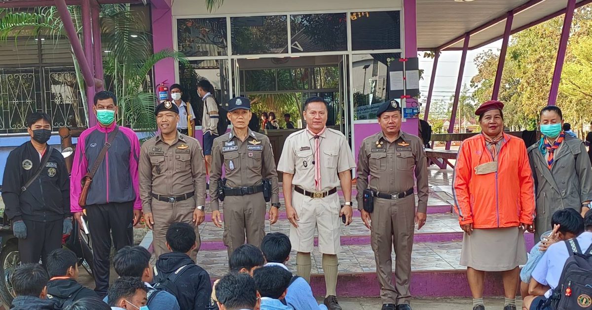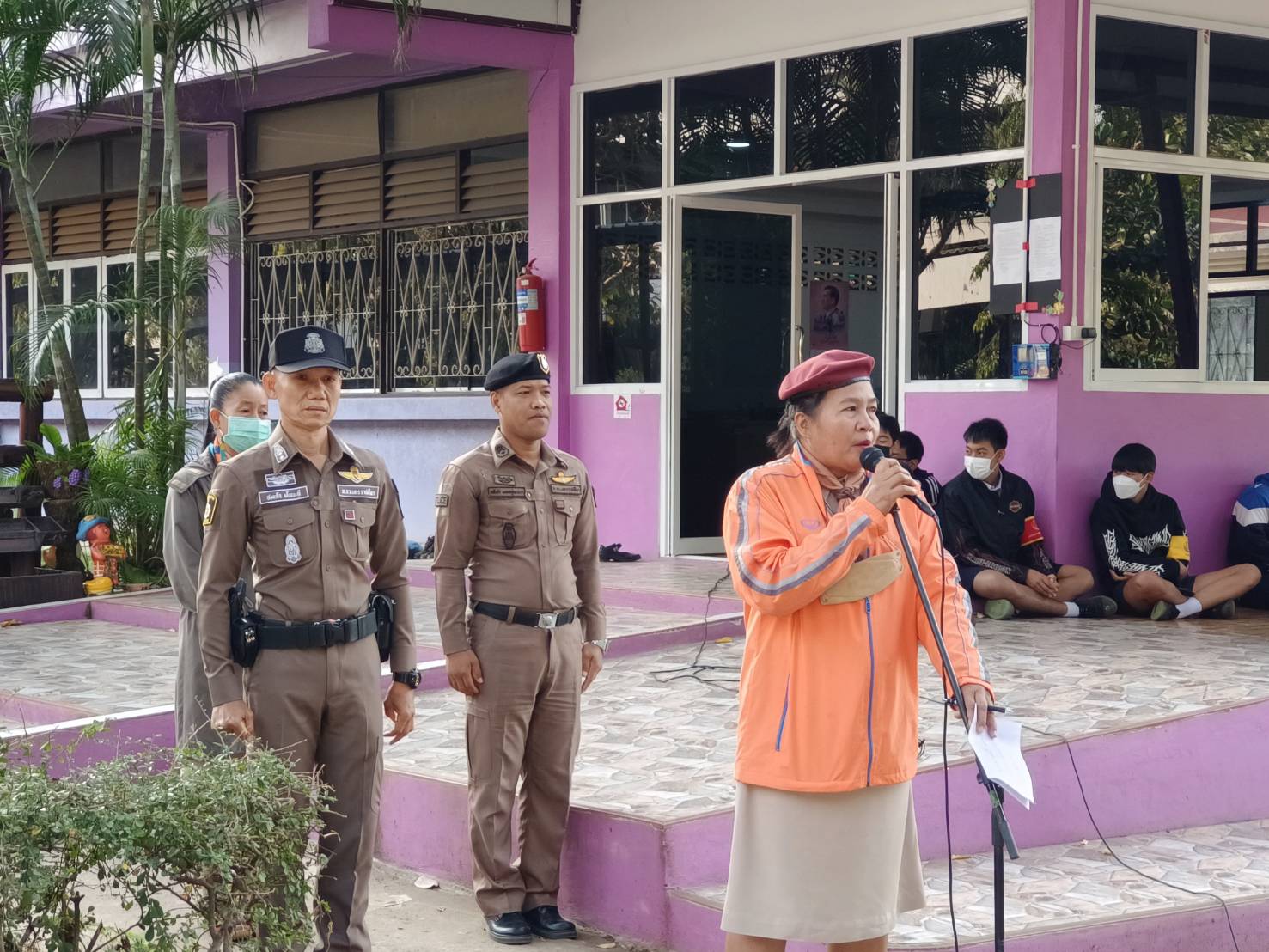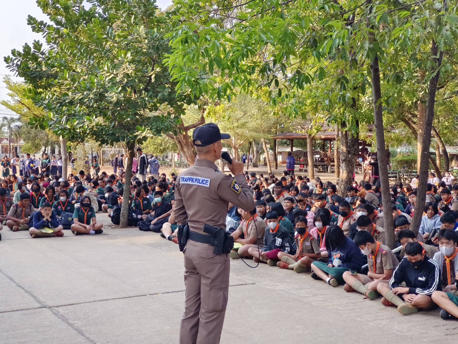 พ.ต.ต.วสันติ มลอยู่พะเนา สวป.(ชส.)ฯ ร.ต.ต.สำเริง สุดาจันทร์ พบปะนักเรียน ให้ความรู้ วินัยจราจร