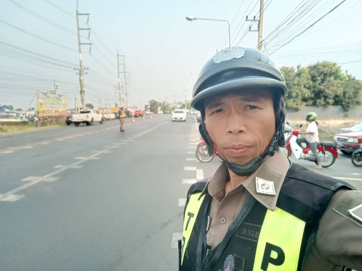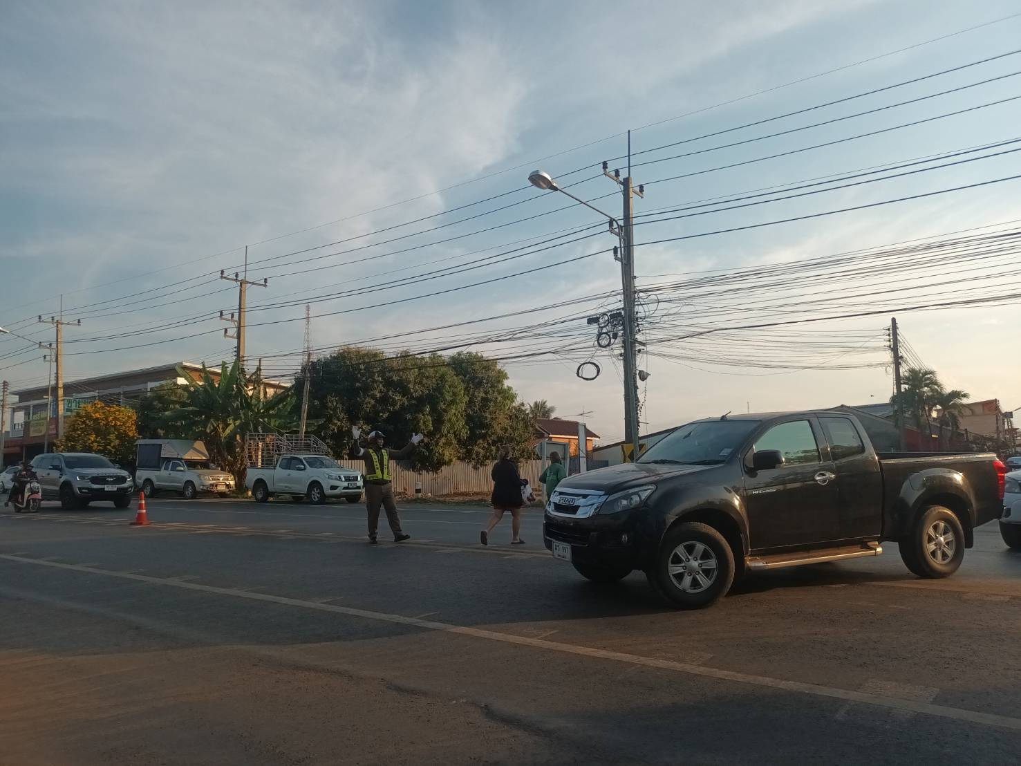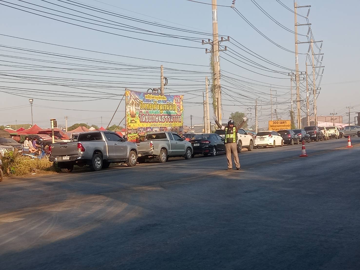 อำนวยความสะดวกการจราจรตลาดนัดข้างโรงพยาบาลครบุรี