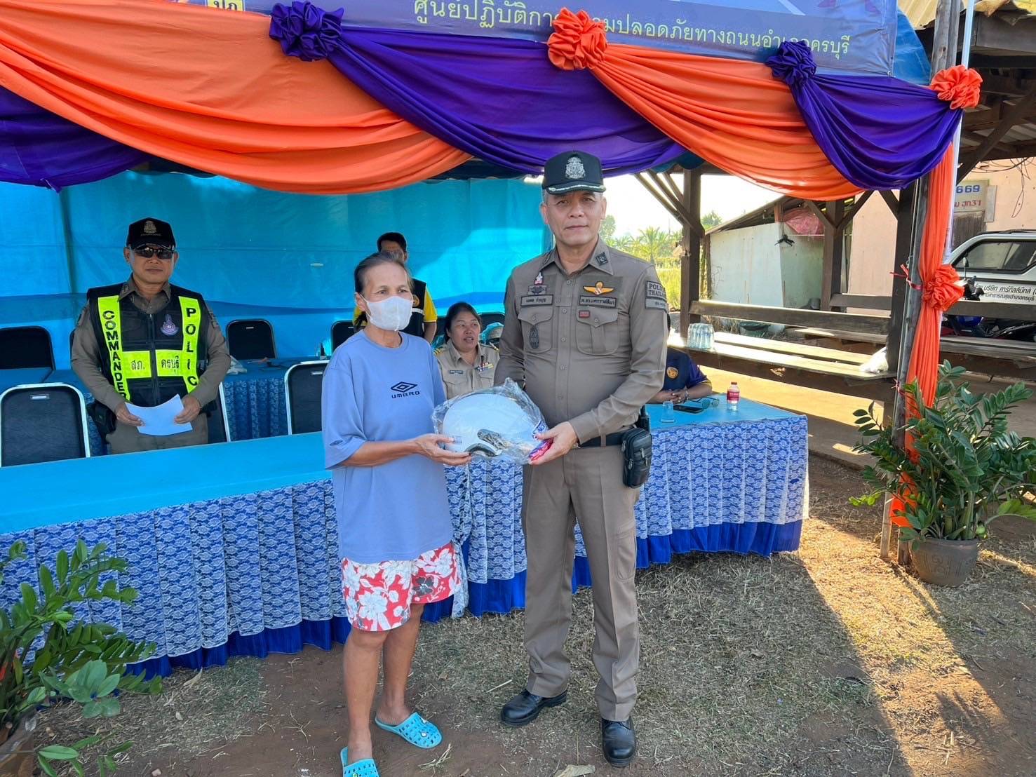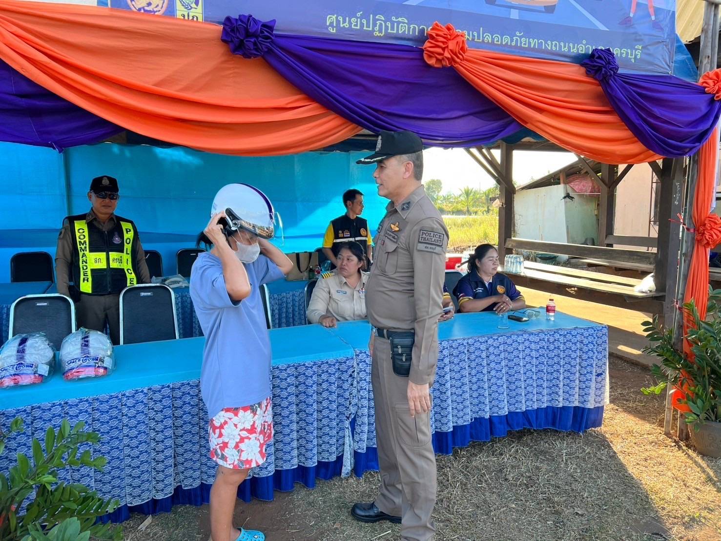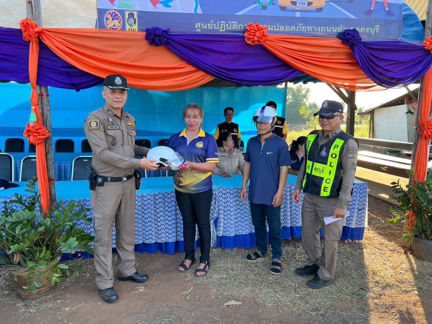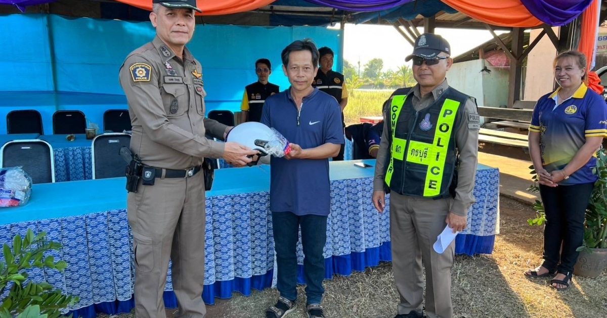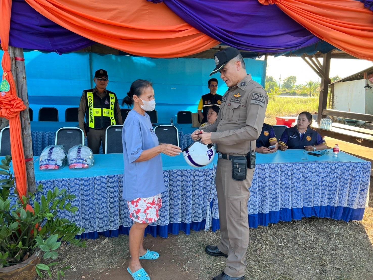 แจกหมวกนิรภัยให้กับผู้ที่ขับขี่ เพื่อลดอุบัติเหตุจราจรทางบกในช่วงเทศกาลปีใหม่ 2568
