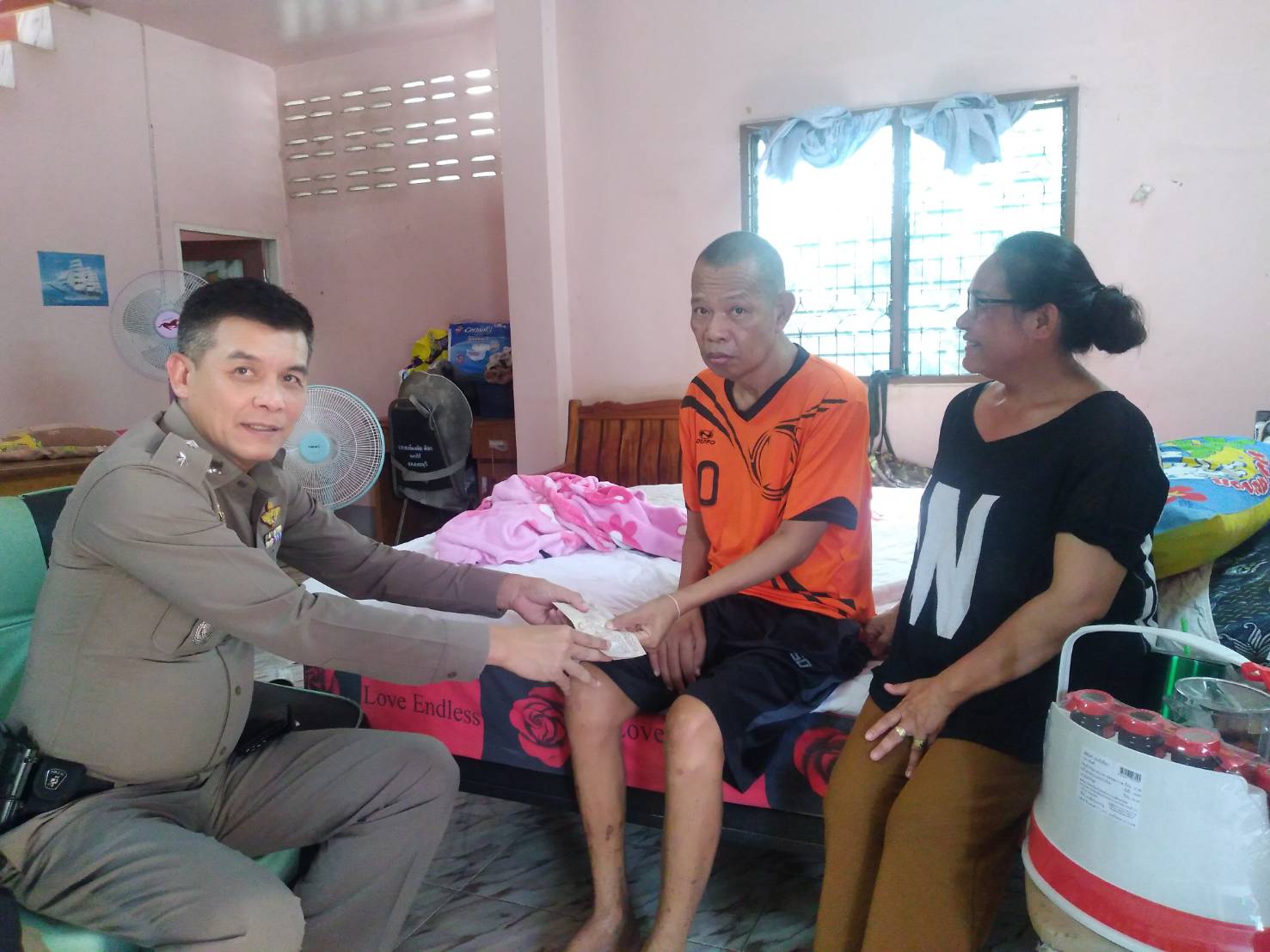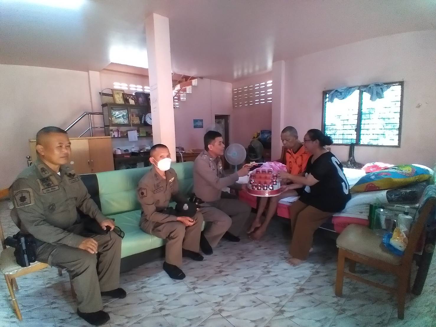 ได้มอบสิ่งของ และเงินช่วยเหลือเบื้องต้น พร้อมสนับสนุนเกี่ยวกับการเดินทางไปพบแพทย์ โดยให้ผู้ดูแลประสานมา เป็นขวัญกำลังใจให้ผู้ใต้บังคับบัญชา