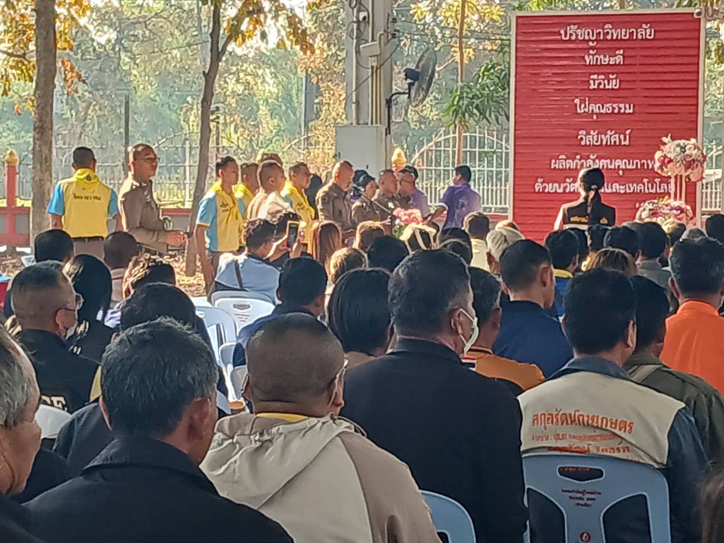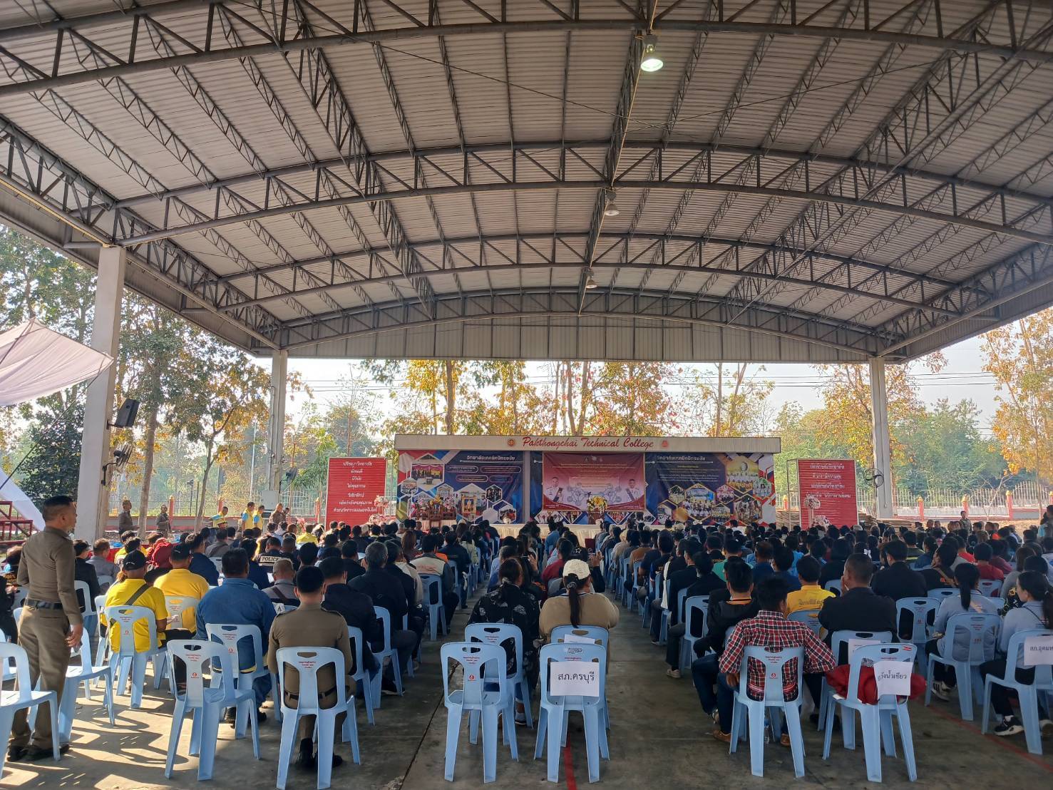วันที่ 6 ก.พ.2568 เวลา 09.00 น. พ.ต.ต.วสันติ มลอยู่พะเนา สวป.(ชส) สภ.ครบุรี,เจ้าหน้าที่ตำรวจชุดชุมชนมวลชนสัมพันธ์ สภ.ครบุรี นำเครือข่ายภาคประชาชนของ สภ.ครบุรี จำนวน 50 คน ร่วมอบรมโครงการสร้างเครือข่ายการมีส่วนร่วมของประชาชนฯ ณ วิทยาลัยเทคนิคปักธงชัย อ.ปักธงชัย จ.นครราชสีมา โดยมี พ.ต.อ.พงษ์พันธ์ บรรจงจิตร รอง ผบก.ภ.จว.นคราชสีมา เป็นประธานในพิธี
