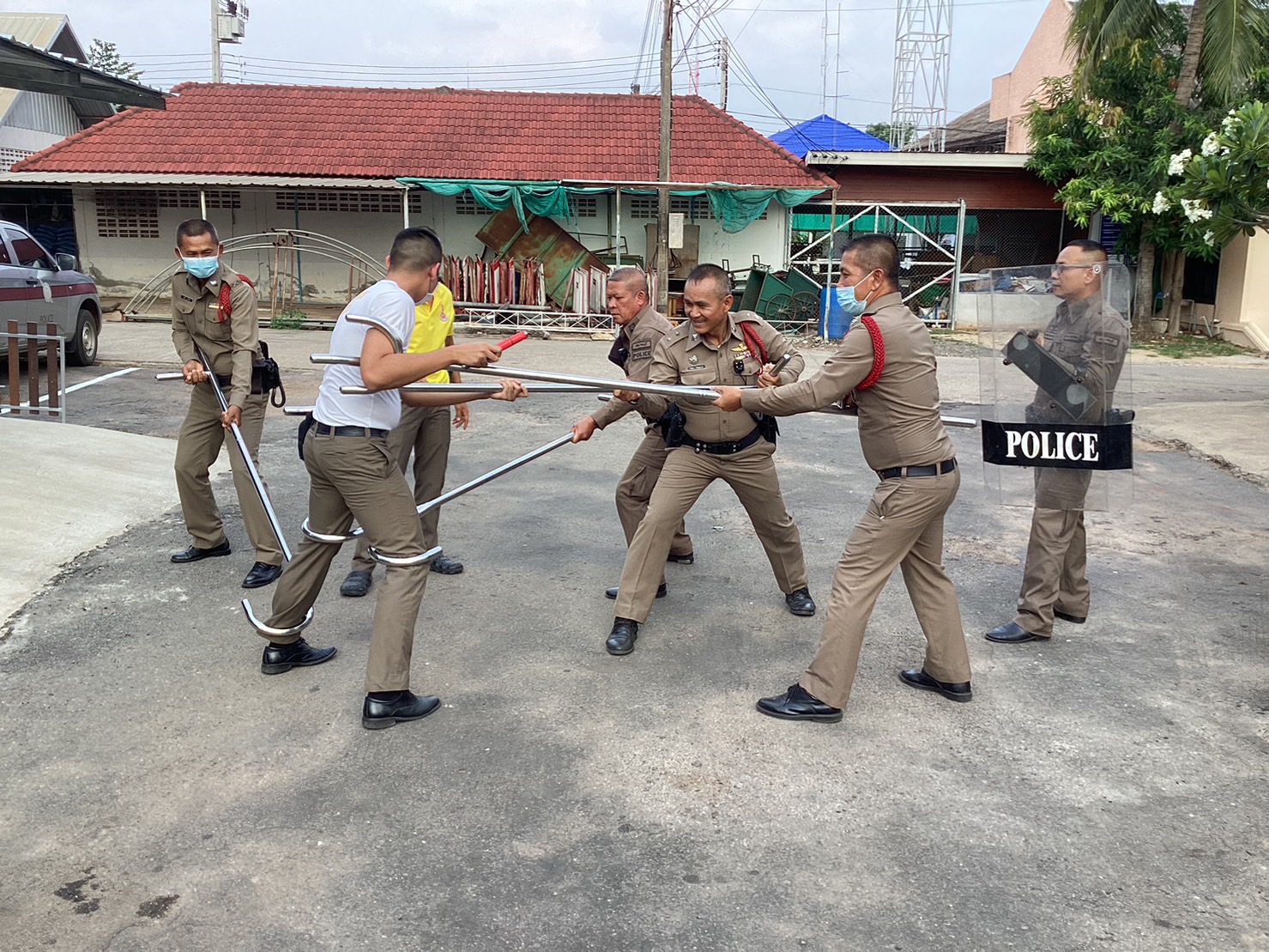 พ.ต.ท.สมเด็จ มโนนะที รองผกก.ป.สภ.ครบุรี พร้อมด้วยพ.ต.ท.ปภพ ศรีเสน สวป.ฯ และ สายตรวจ ร่วมซักซ้อมยุทธ