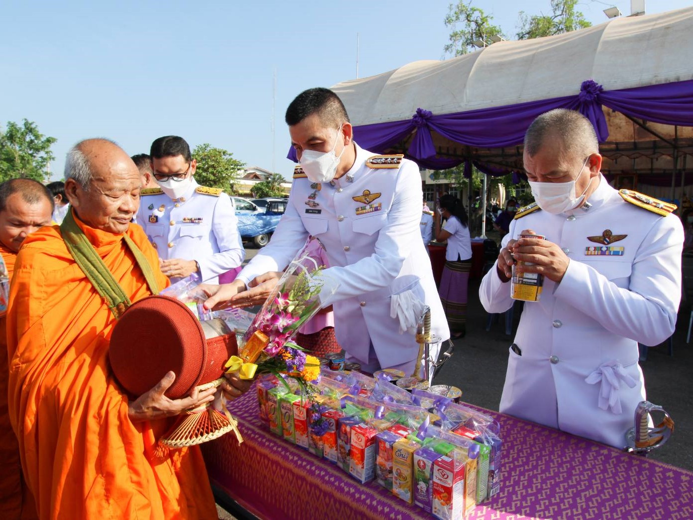 พ.ต.อ.นพดล ช่วยบุญ ผกก.สภ.ครบุรี พร้อมข้าราชการตำรวจ สภ.ครบุรี ร่วมทำบุญตักบาตรข้าวสารอาหารแห้ง เนื่