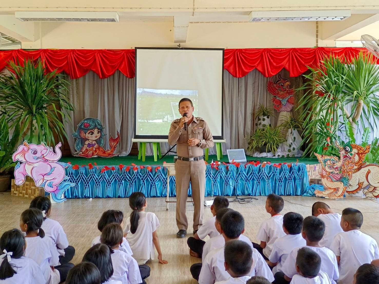 เจ้าหน้าที่ ชมส.สภ.ครบุรี ให้ความรู้ นักเรียนชั้น ป.4 ถึง ม.3 โรงเรียนบ้านมาบกราด จำนวน 150 คน เนื่อ