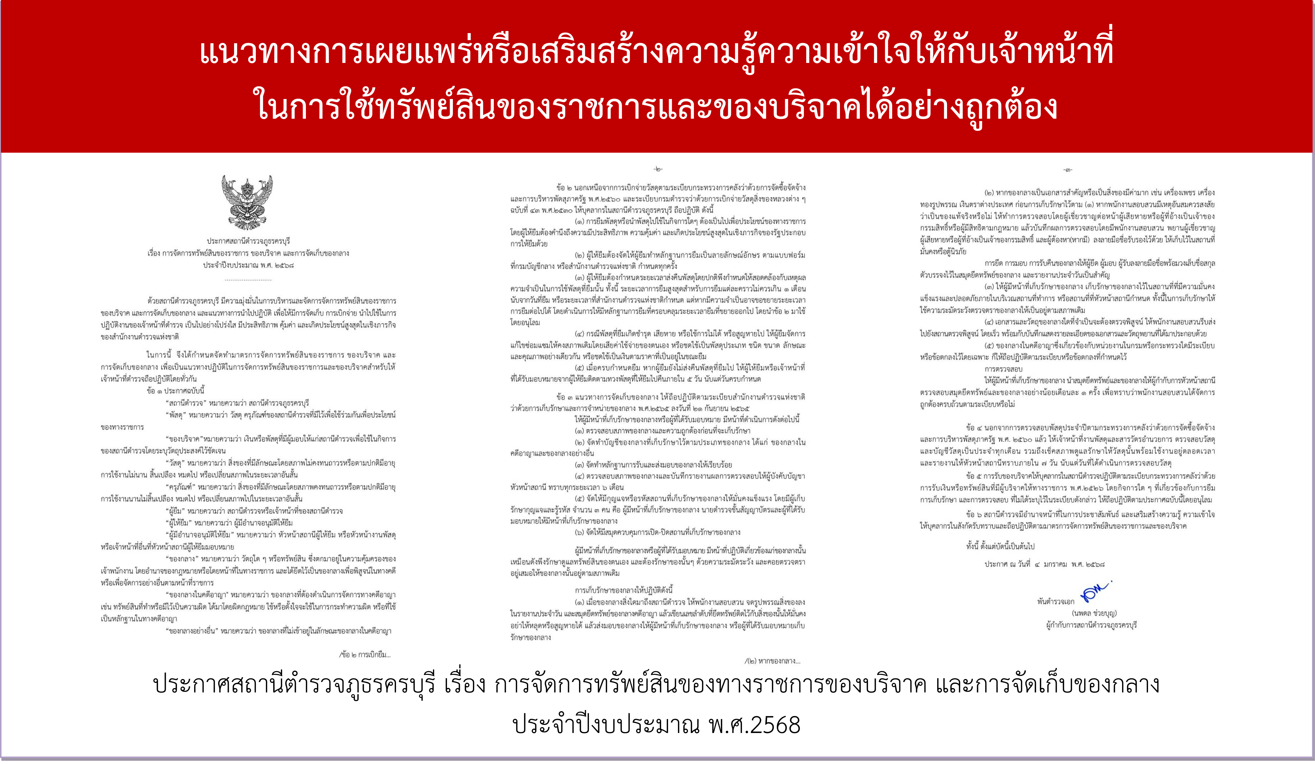 ประกาศสถานีตำรวจครบุรี เรื่องการจัดการทรัพย์สินของทางราชการ ของบริจาค การจัดเก็บของกลาง