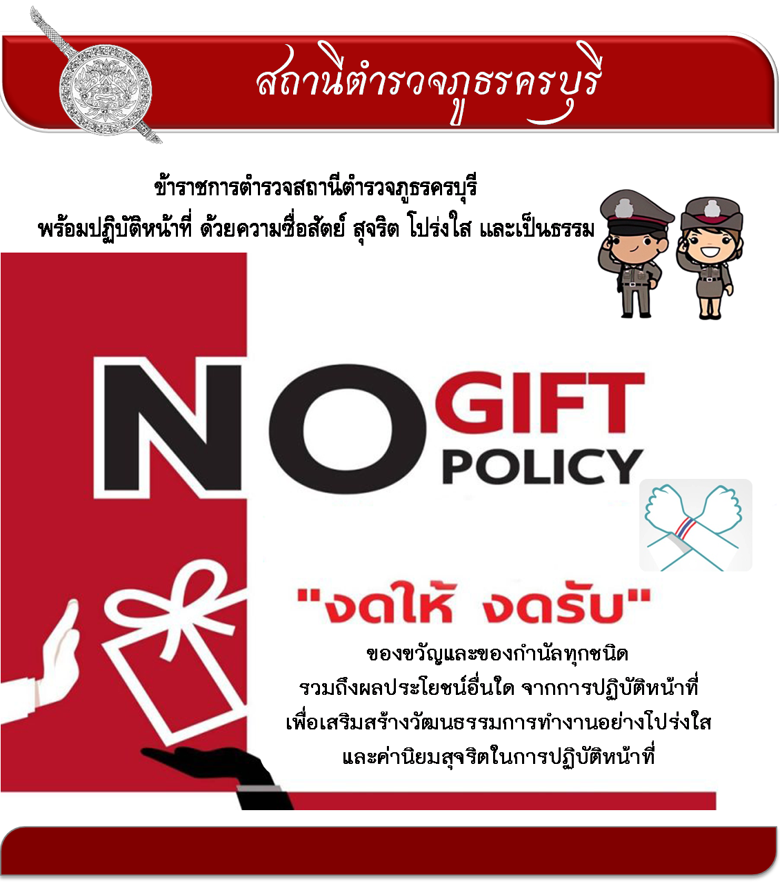 2.ประกาศเจตนารมณ์ที่จะไม่รับของขวัญหรือของกำนัลทุกชนิดจากการปฏิบัติหน้าที่ (No Gift Policy)